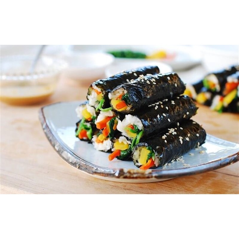 Lá rong biển bản to, dễ dàng làm các món sushi, cơm cuộn. Rong biển tự nhiên có tẩm gia vị, thơm ngon, kích thích ăn uống, dùng trong các bữa cơm hoặc như snack ăn vặt.