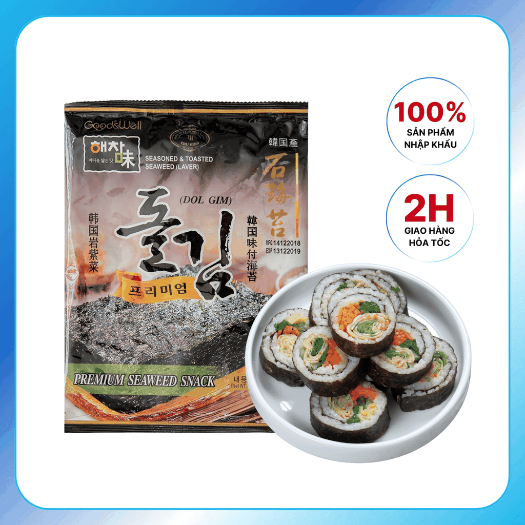Rong biển cuộn cơm Dolgim Hàn Quốc được làm từ 100% rong biển, sử dụng để chế biến những món ăn thơm ngon, hấp dẫn và bổ dưỡng như cơm cuộn, sushi, canh rong biển... Thành phần dinh dưỡng có trong rong biển cung cấp những năng lượng cho cơ thể bạn khỏe mạnh mỗi ngày.